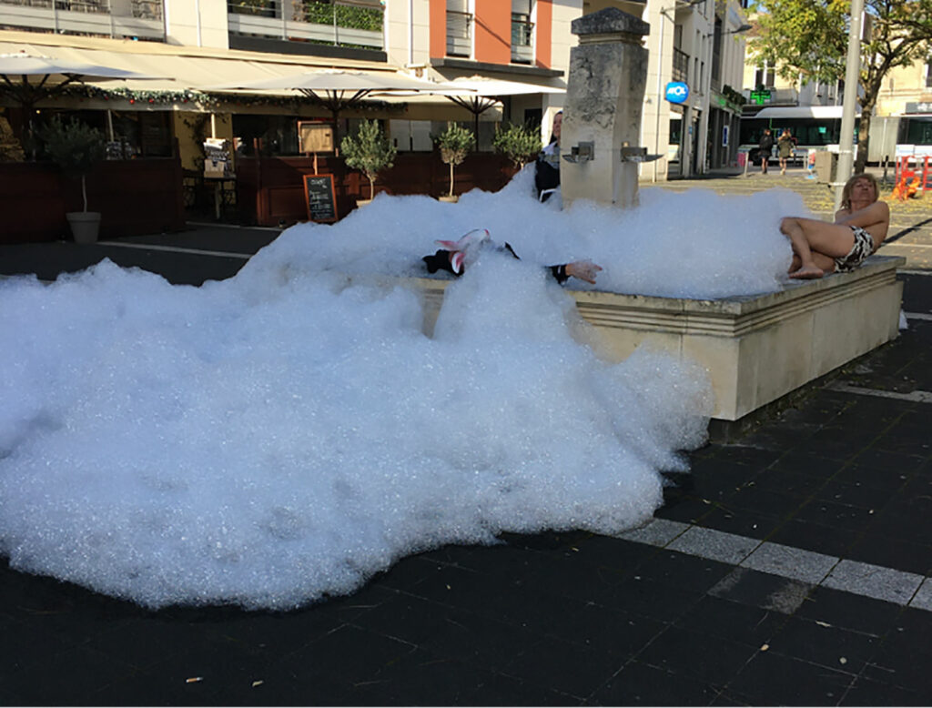• Pendant une semaine, la ville marchera à l!envers…La neige sera tombée à un seul en-droit de la ville, un groupe de personne attendra sous un abribus transformé en cabine de téléski, le rondpoint deviendra lieu d!habitation…